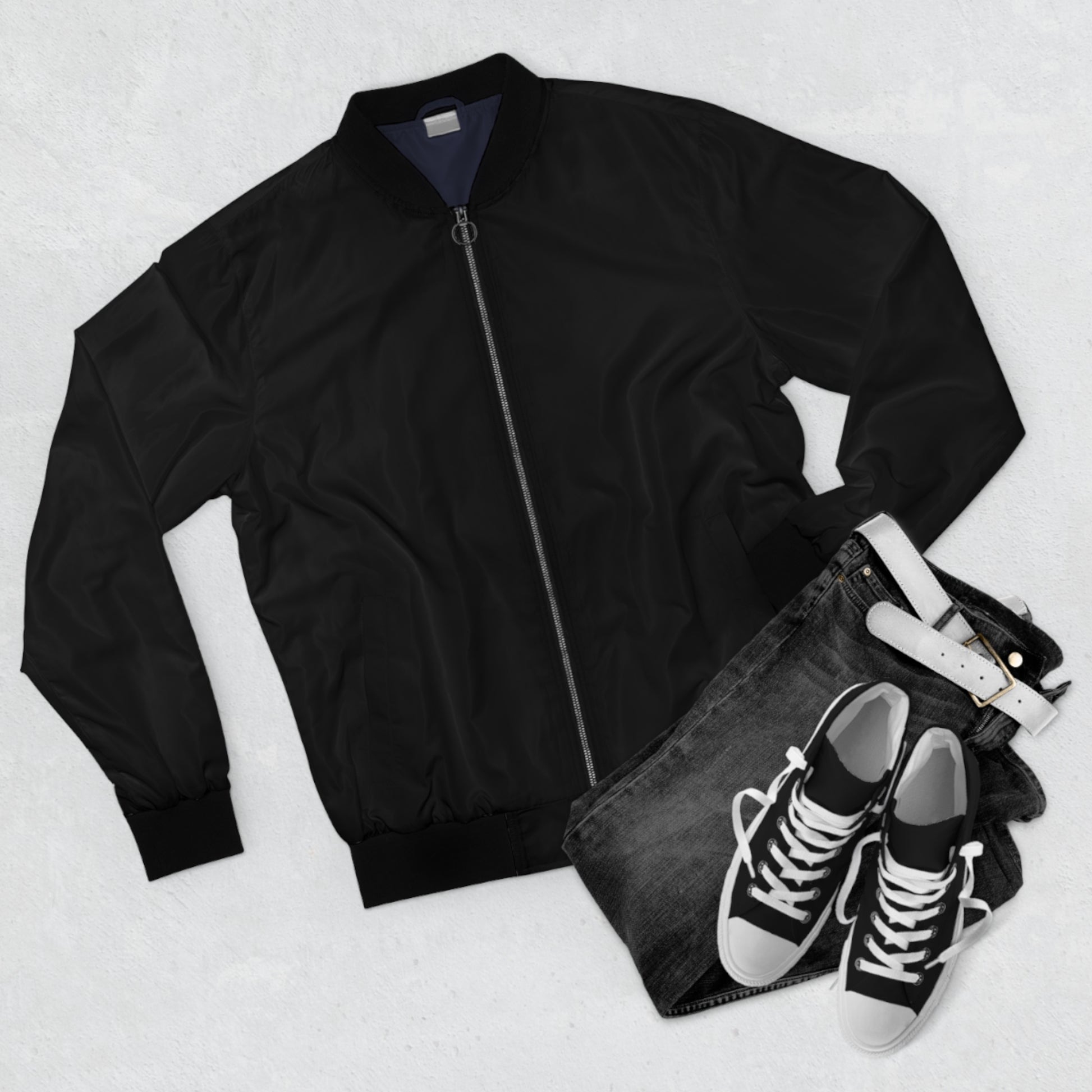 This bomber jacket carries a quiet, handcrafted attitude — a slim armor for studio nights, street walks, and the in-between moments. The rich black weave lets the ornate white back emblem breathe: a vintage-inspired crest that reads like an old shop sign, nodding to tattoo ink, carved wood, and hand-lettered posters. It slips on easily over tees or hoodies, the rib-knit collar and cuffs sealing warmth without bulk. Wear it to client consults, late-night sessions, or when you want your studio’s aesthetic to speak before you do.