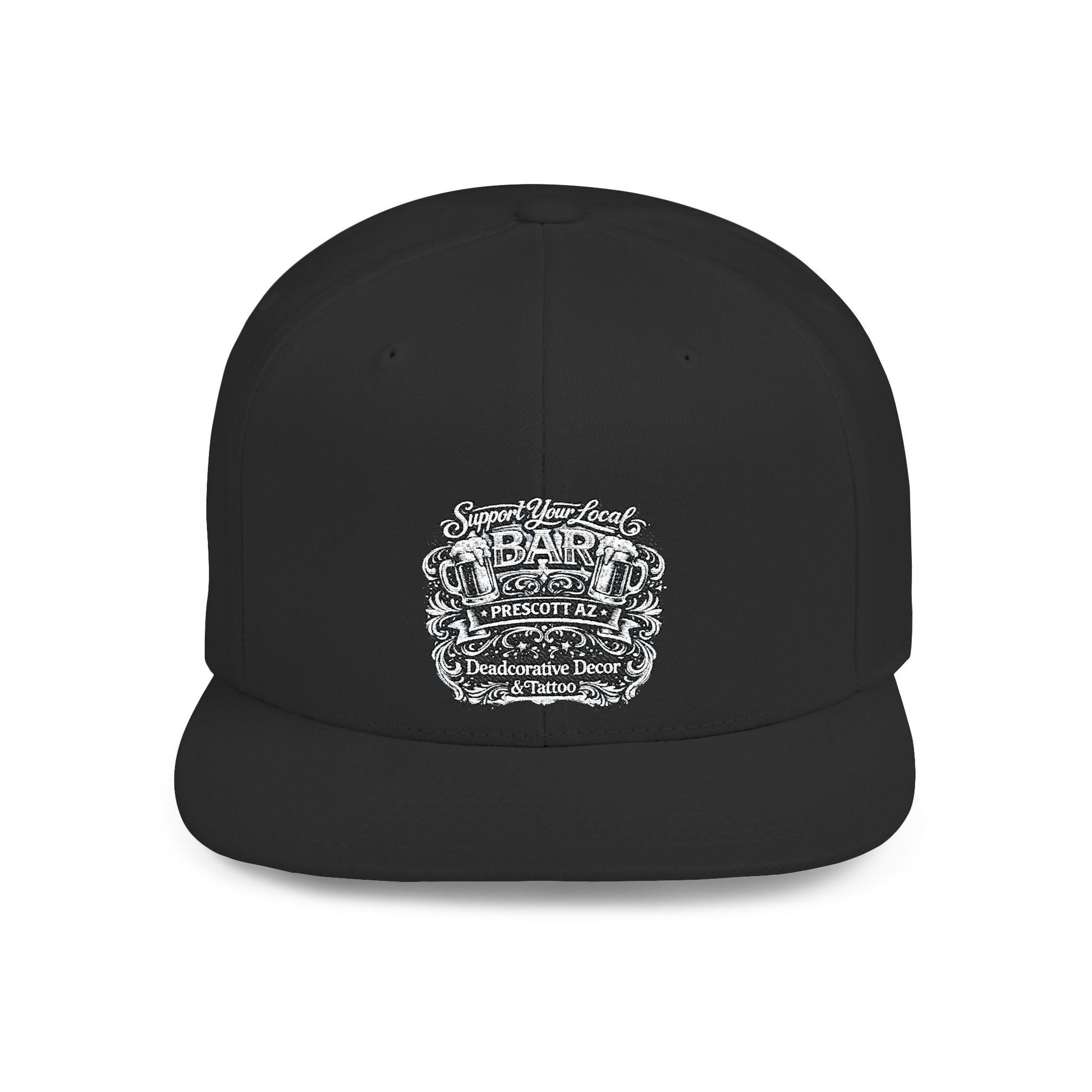 ‘Support Your Local Bar’ Flat Bill SnapBack Hat - Deadcorative Flat Bill Snapback Hat