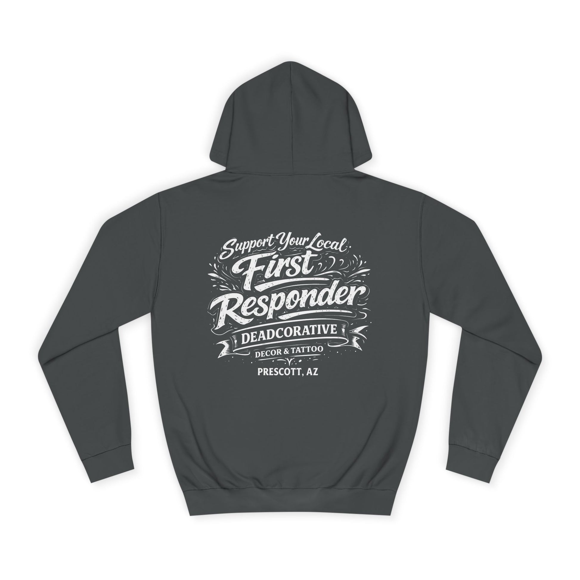 'Support Your Local First Responder' Hoodie — Deadcorative Graphic Pullover Hoodie